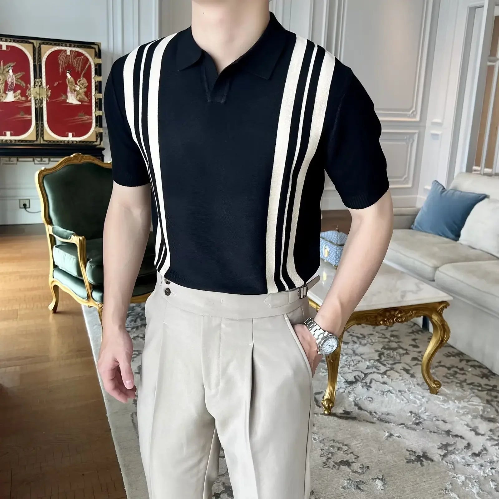 Crafted from soft cotton and premium fabrics to provide a comfortable feeling, this polo features a timeless stripe design and a classic collar. It is made to be worn with ease across different settings-casual or elevated.Designed for individuals who exude both style and confidence. A versatile piece that pairs effortlessly with jeans, trousers, or layered under a blazer for a refined touch